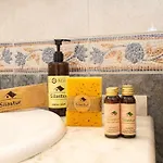 Enjoy the comfort of a bathroom in this apartment, which is equipped with a hairdryer.